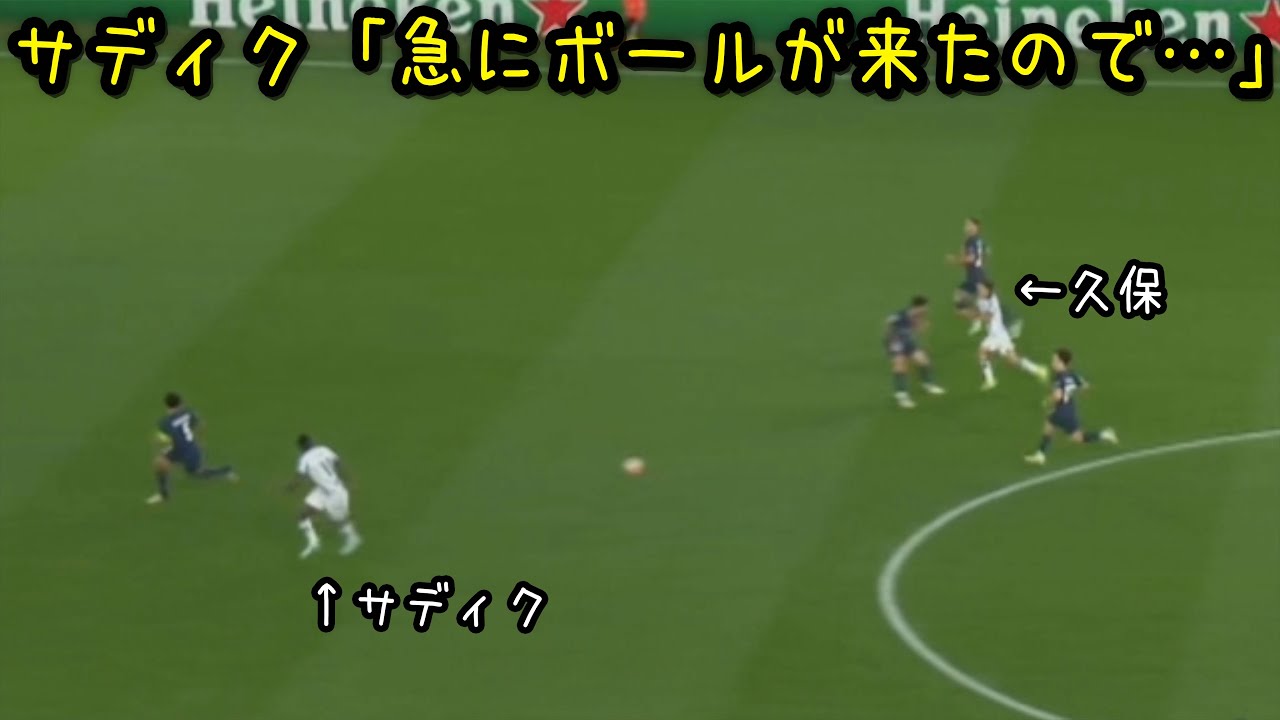 PSG戦で久保のスルーパスを台無しにするサディク