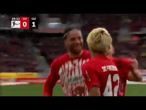 堂安律ゴール、(2-2) SCフライブルク対アイントラハト・フランクフルト(3-3)全ゴールと延長ハイライト